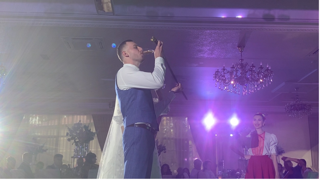 ¡Qué queréis que os diga! Fiel al estilo de vida mediterráneo, estoy desde pequeño acostumbrado a disfrutar de la comida tranquilo y sin interrupciones. Si vais con estas intenciones os anticipo que se trata de una misión imposible. El banquete se convierte en un brindis constante en el que el vodka, el coñac y el samogón, riegan las gargantas de los invitados en cantidades industriales. Por una parte, no hay momento para el descanso ¡Pobres novios! Por otra, es muy emotivo ver a todos los familiares y amigos brindar sus palabras bonitas, en las que les desean éxitos, amor, salud, una familia grande, trabajo, etc.